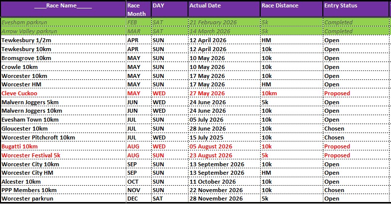 Event #03: 12th April 2026 is Tewkesbury 1/2M and 10km, and we hope the weather continues to improve to ensure everyone entered has a great run.